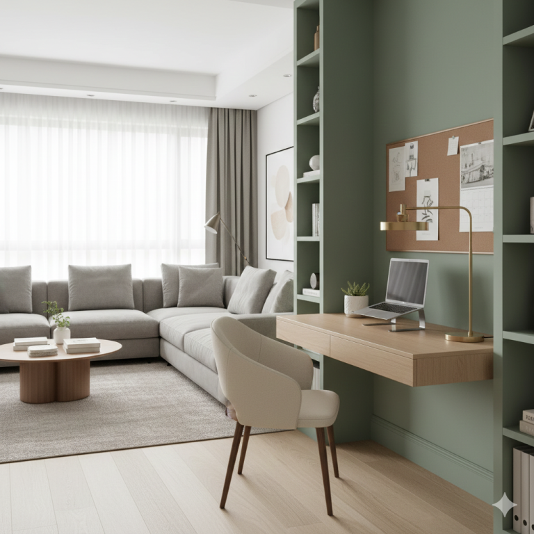 Soluții inteligente pentru un birou în living modern