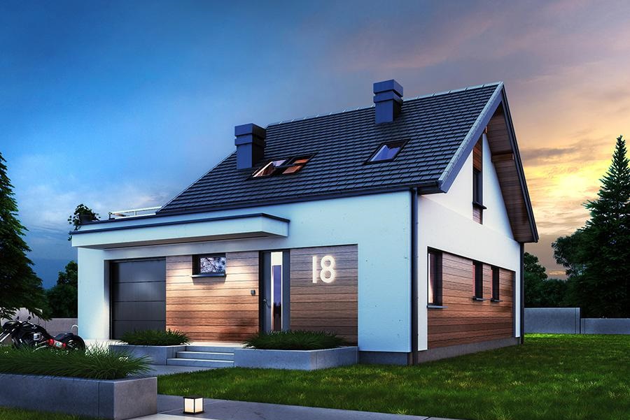 O casă cu un etaj, cu economie de energie, cu o terasă relaxantă și un singur garaj