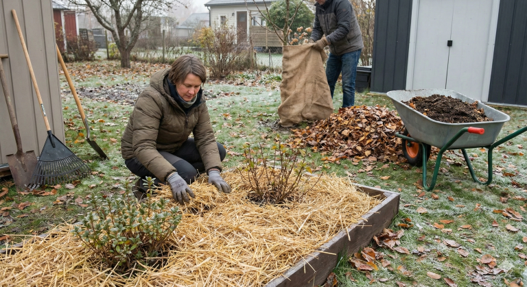 - Protecția solului: Aplică un strat de mulci pentru a proteja rădăcinile de temperaturile scăzute. O tehnică populară este utilizarea frunzelor mărunțite, care nu doar că protejează, dar se și descompun, îmbogățind solul.